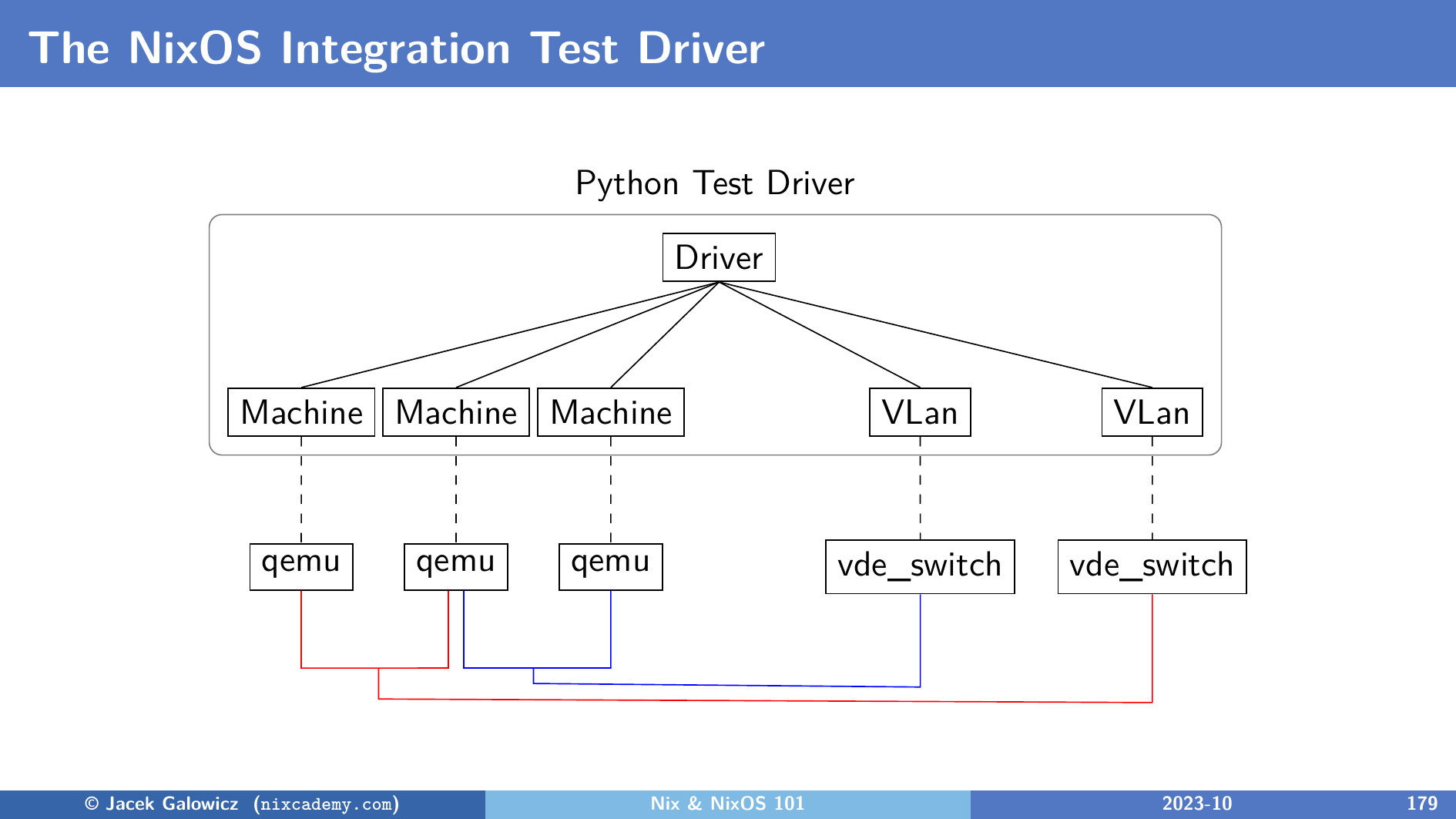 Slides and examples from the NixCon and Planet Nix workshop on the test driver.